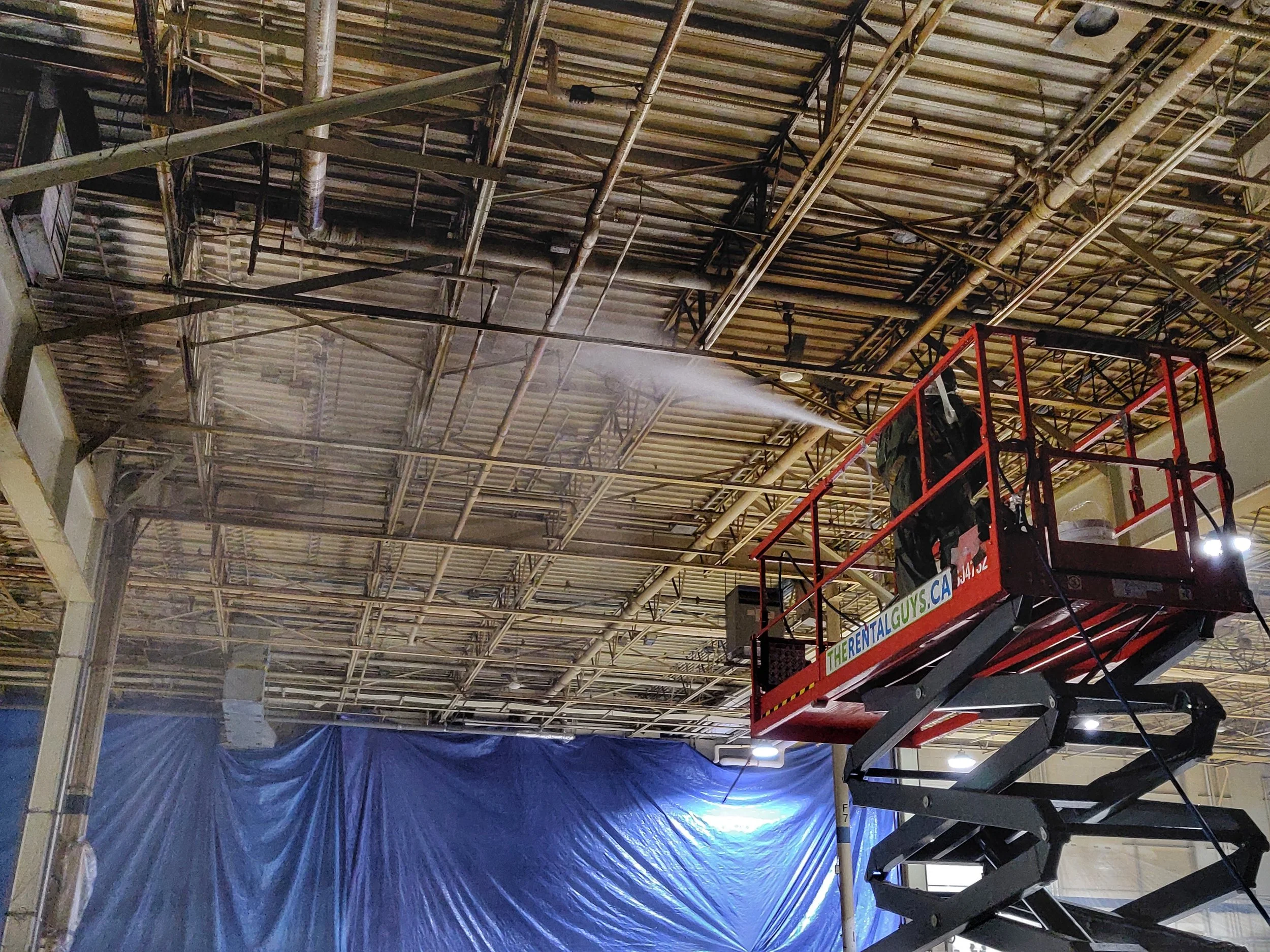 When Pressure washing the Ceilings, Walls, and Floors of your property, we make sure to take extreme caution in preventing damage to any of our client’s assets, such as any drywall, electricals, or machinery, by waterproofing and covering any and all vulnerable areas. We are devoted to maintaining a high level of service for all our clients and making sure your building and your assets are well protected when washing the interior of your building.